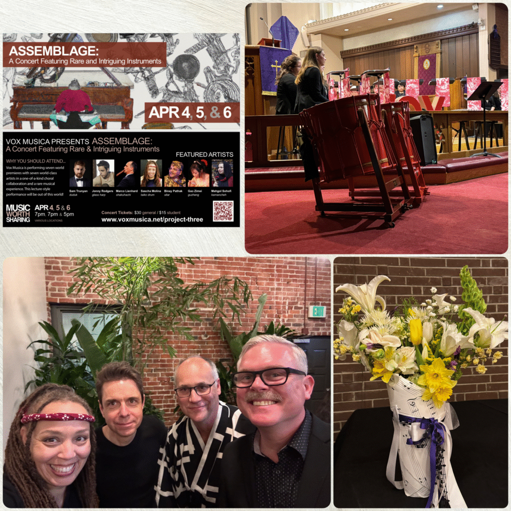 We started April with a bang! I was part of a a concert series with the wonderful vocal talents of Vox Musica. Each of the three shows were in a different location which was very interesting! Marco Lienhard, a wonderful taiko player, shakuhachi player and leader of the group Taikoza (based in New York) was also part of this series. It was great fun to have a little time to talk to hang out and play. If you are in the Sacramento Area and Vox Musica has a performance, please go and see them!