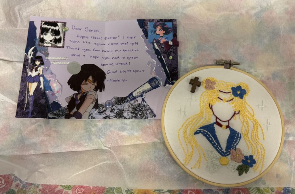 Spring Break is here and boy am I ready for it! I have so many talented students, below is a homemade card and embroidery made by one of my students as a gift for Easter. So amazing ❤️ Happy Spring and Happy Easter!