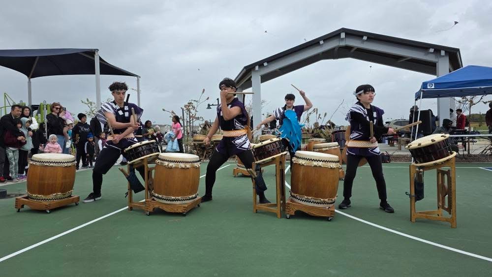The Sacramento Taiko Dan Youth Performing Ensemble performed at the North Natomas Kite Festival. As always, it was a fun time watching everyone fly their kites. The wind was definitely being cooperative this year and there were some great venders. It gets bigger and bigger every year. And of course the taiko performance was awesome!
