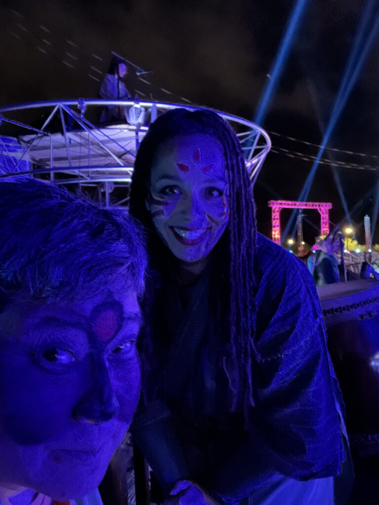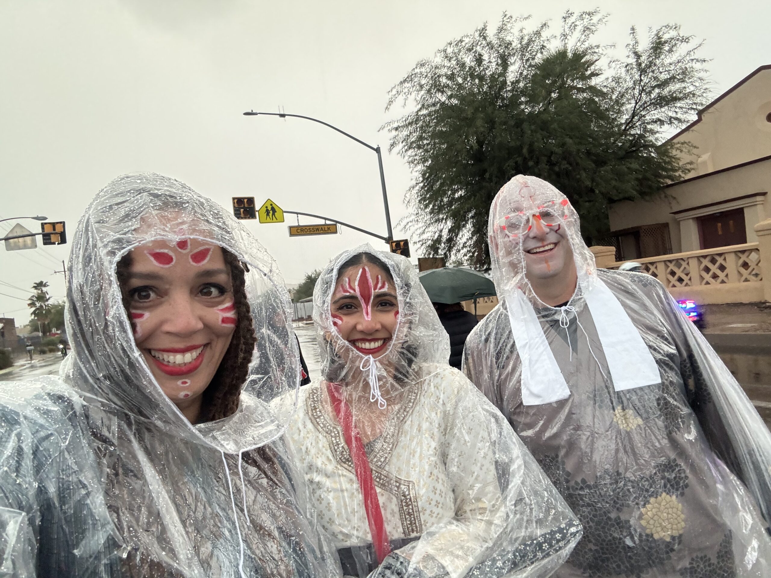 This is a special month. I was able to start out this month being part of the finale performance of the All Souls Procession which is held in Tucson, AZ. Upwards of 200,00 participants come together and process down the streets for two miles that end in the ceremonial burning of the urn. The urn is filled with the hope, offerings and wishes from friends and family for those who have passed. Unfortunately, it had been rainy all day. We processed and got onto the stage, and two minutes before we were to start our show, the sky opened up and there was a downpour and crazy lightning, so we had to cancel. But even though we were unable to put the show on that night, the Urn was able to be lit and we sang one of the songs of our show with all our heart. I was able to spend time with dear friends and colleagues.